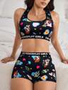 TOM & JERRY X SHEIN 女士可爱卡通字母印花胸罩和内裤套装