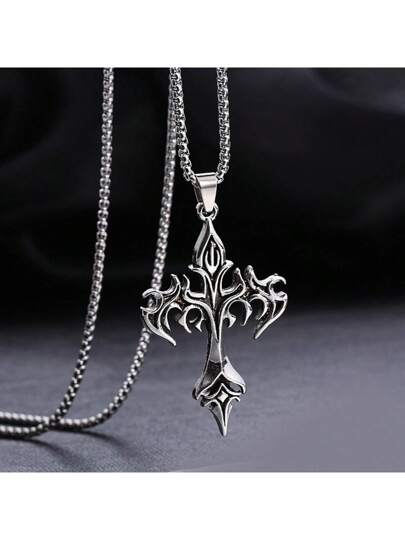 女男通用時尚復古火焰吊墜項鍊,長項鍊底特律崛起文化,潮流配件,鎖骨頸鍊,哥特風格珠寶 - 復古銀色 - 查看 1