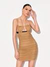 ipc 後背繫帶褶邊網紗覆蓋緊身連衣裙