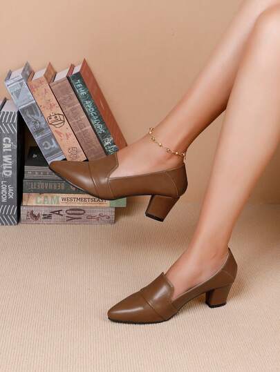 時尚和優雅女士樂福鞋尖頭高跟鞋高跟鞋 - 棕色 - 查看 10