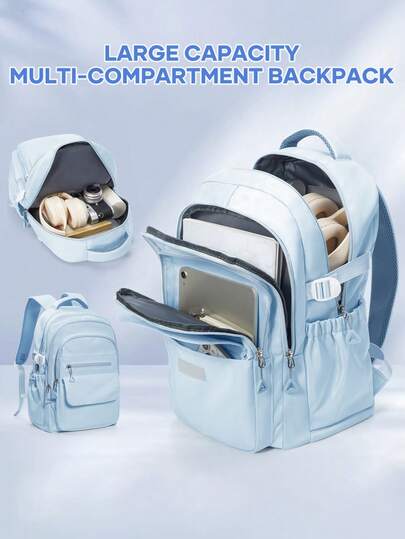 时尚百搭纯色笔记本电脑工作背包,适合 14-15.6 英寸笔记本电脑,男女皆宜,防水校园背包,适合高中大学,25L 大容量旅行单肩包,防水商务通勤背包,多口袋实用背包,青少年笔记本电脑书包,轻便耐用男女通用背包,时尚休闲背包,带衬垫肩带 - 藍色 - 查看 7