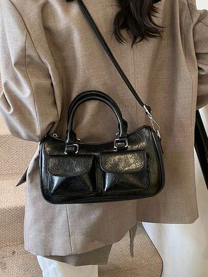 节日新款时尚大容量高端韩版休闲简约轻便百搭韩版格纹慵懒可调节肩带女士单肩斜挎手提包,适合旅行、购物、约会、女性礼物,适合少女、大学生、新手和白领,适合办公室、学院、工作、商务、通勤、户外活动 - 黑色 - 查看 11