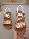 夏季儿童编织带凉鞋,金色,休闲时尚,男女童平底沙滩鞋,适合日常、度假和旅行