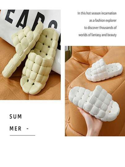 时尚个性化女士防滑浴室拖鞋,2025年新款夏季室内家居防臭淋浴凉鞋,女士系带户外沙滩拖鞋 - 綠色 - 查看 1