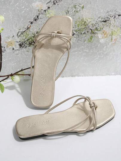 时尚女士人字拖 - 轻便、透气、露趾、平底、休闲夏季鞋,配有舒适鞋垫和可调节鞋带,方便行走 - 金色 - 查看 1