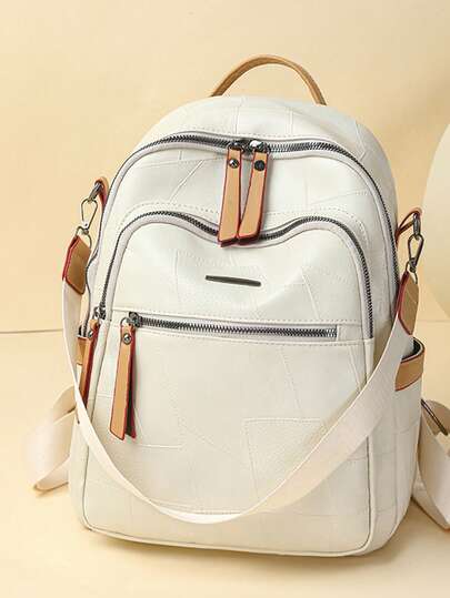 时尚女士旅行大容量编织材质可转换单肩/双肩背包,适合电脑/学生,街头风格 - 米色 - 查看 1