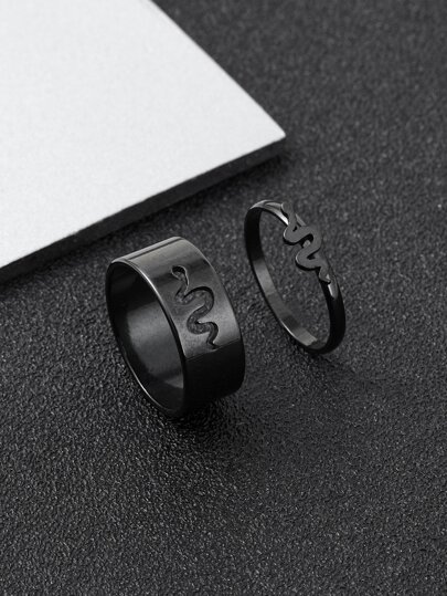 時尚流行2入組男士蛇裝飾戒指,不銹鋼珠寶哥特朋克珠寶,適合珠寶禮物和時尚外觀 - 黑色 - 查看 1