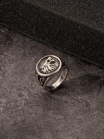 時尚流行男士復古雕刻戒指合金,適合珠寶禮物和時尚外觀 - 復古銀色 - 查看 1