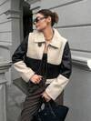 Y2K Amplova 抢眼小翻领长袖性感百搭女式仿皮草大衣