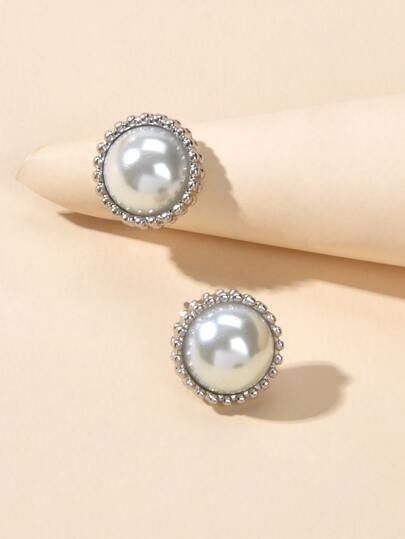 人造珍珠裝飾耳釘 - 銀色 - 查看 1