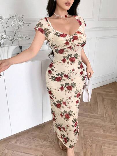 Feyla 休闲印花修身女式连衣裙 - 杏色 - 查看 1