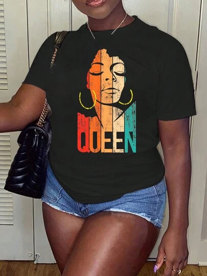 圖形和字母印花t恤 - 黑色 - 查看 1