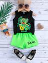 2 件套男婴夏季短袖印花套装,圆领上衣搭配休闲裤,时尚套装