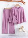 2 件套女婴罗纹羊毛休闲装,圆领上衣和喇叭裤,春秋季