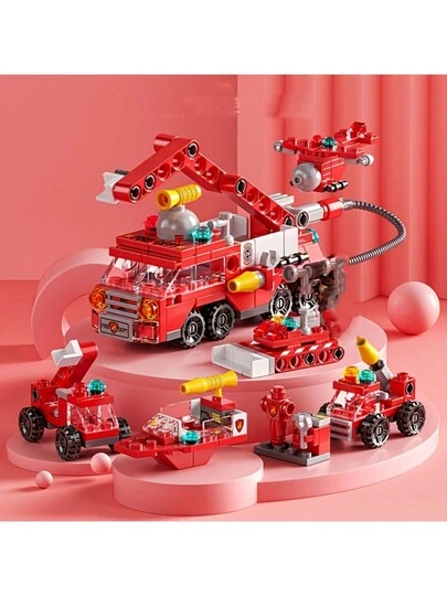 消防車積木,6 合 1 益智遊戲模式,腦筋急轉彎和減壓遊戲,男孩生日和節日禮物套裝 - 消防車積木模型套裝 - 查看 6