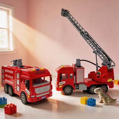 消防车玩具,带灯光音效的消防救援车玩具,摩擦动力,适合日常玩耍、消防主题角色扮演、学校用品、派对礼物、户外玩具、儿童生日礼物、男孩玩具、互动游戏 - 彩色 - 查看 12
