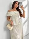 Firerie 大码女式优雅露肩褶皱宽松 A 字长袖超长连衣裙,弹力休闲,适合通勤、秋冬季
