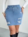 Firerie 大码休闲水洗开衩紧身牛仔裙