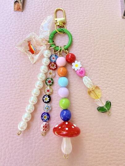 鱼形包包挂饰串珠郁金香钥匙扣蘑菇包包挂饰可爱背包配件金链钱包挂饰送给女孩和女士的礼物Y2K旅行必备卡哇伊