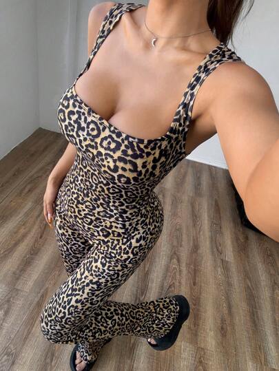 Flirla 合身方形领口背心和喇叭腿连体裤套装 - 彩色 - 查看 1