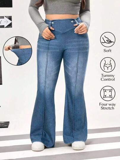 Flexra 大码女式高腰喇叭休闲百搭牛仔裤