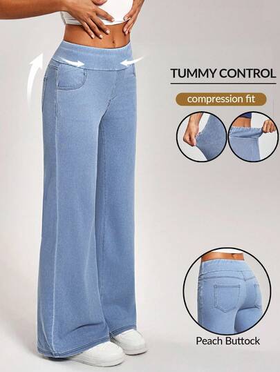Flexra 女式松紧腰口袋阔腿宽松休闲牛仔裤 - 藍色 - 查看 5
