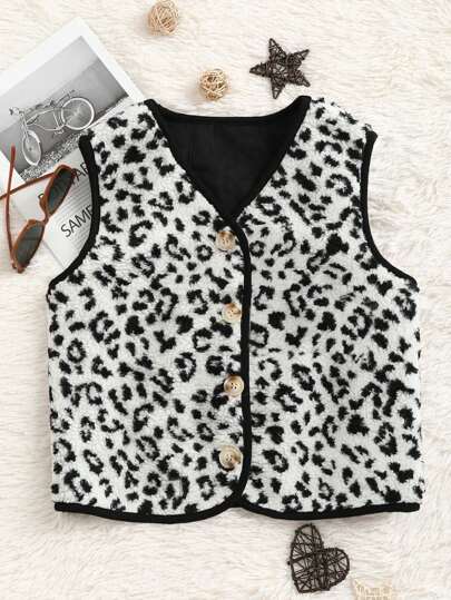 SHEIN Unity 1 件女式蓬松豹纹背心夹克 - 白色 - 查看 1