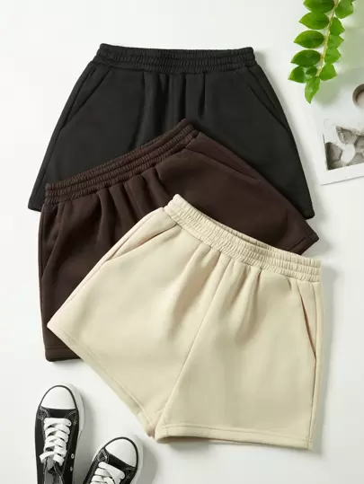 SHEIN Unity 3入組休閒寬鬆短褲 - 咖啡棕 - 查看 1