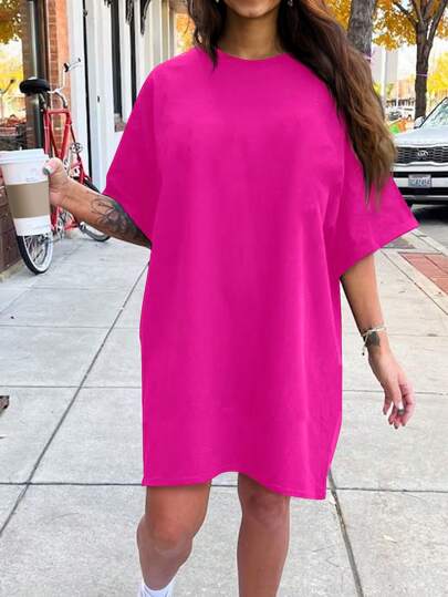 Flirla 大尺碼夏季休閒寬鬆簡約風裙子 - 玫紅色 - 查看 1