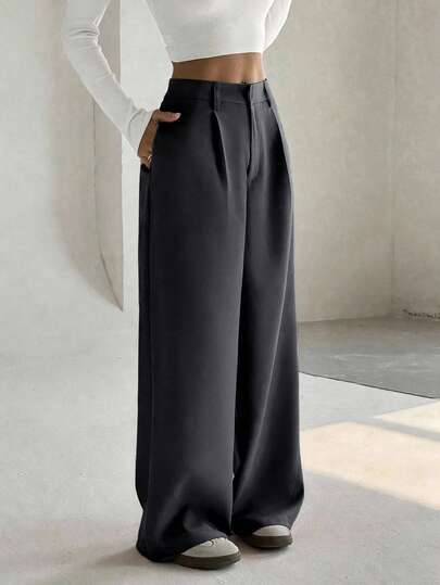 Flirla 女士优雅修身休闲阔腿裤,适合日常办公、夏季休闲、度假、校园风、毕业季等场合,藏青色、炭灰色