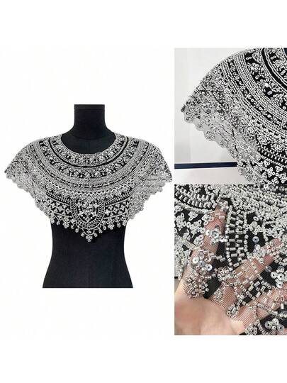 花卉刺绣DIY套装:亮片镂空绣花披肩和袖口,晚礼服、旗袍服装配饰,可DIY服装 - 彩色 - 查看 1