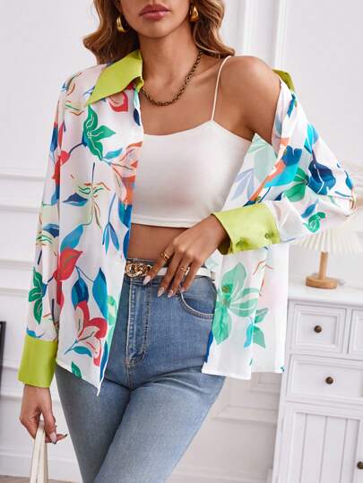 SHEIN Clasi 印花前紐扣襯衫 - 彩色 - 查看 1