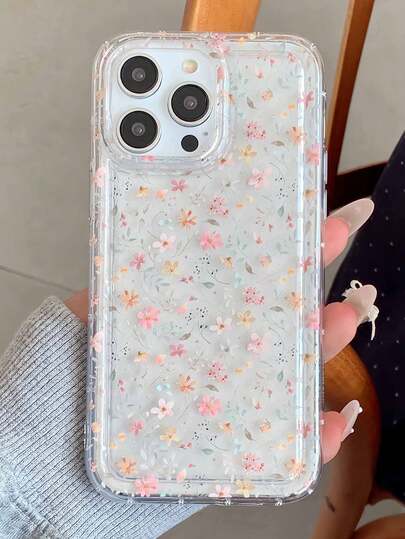 Flower 1pc 高端时尚满版碎花透明气垫手机保护壳 兼容 iPhone - 多色 - 查看 5