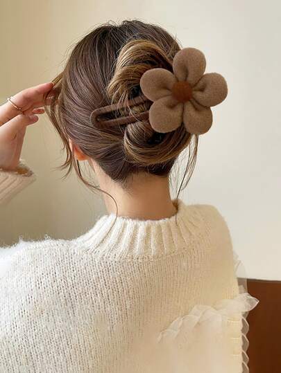 花朵装饰发夹,可爱时尚,适合女性日常装饰、发饰、发卡、发爪、发夹、发饰,也适合度假装扮和头部配饰。 - 棕色 - 查看 1
