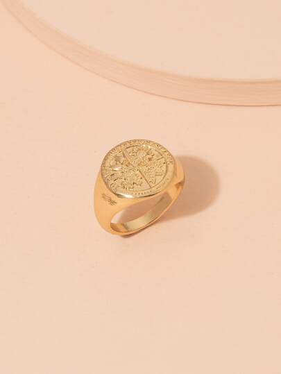 花朵和叶子纹理戒指情人节 - 金黃色 - 查看 1