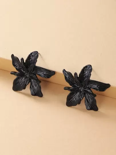 花耳釘 - 黑色 - 查看 1