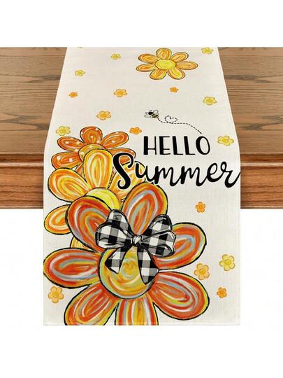 花朵蝴蝶结蜜蜂夏日好心情桌旗,春季厨房餐桌装饰,适合家庭派对装饰、婚礼、家居装饰、婚礼装饰、餐桌装饰、厨房装饰、婚礼用品、厨房、新娘送礼会 - 彩色 - 查看 5