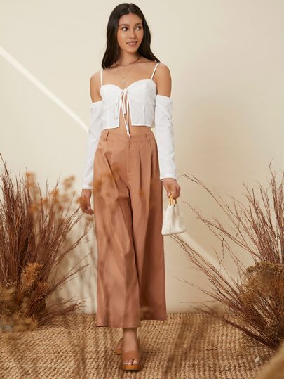 SHEIN 褶皺闊腿褲 - 珊瑚橙 - 查看 5