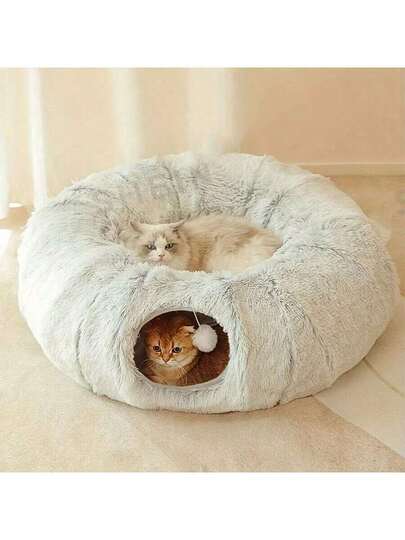 可折叠、可拆卸、可清洗的多功能猫隧道,毛绒温暖猫咪藏身处,宠物猫隧道,颜色随机(橙色或黑色) - 灰色 - 查看 1