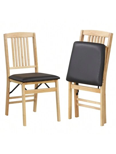 Folding Dining Chairs Set Of 2 Foldable Upholstered Kitchen Chairs - 黑色 - 查看 1