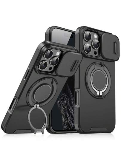 适用于 17 Pro Max 16E 16 15 14 13 12 11 Pro Max 手机壳防震装甲滑动磁吸外壳适用于 16promax 16pro 16Plus 17Pro 17Air 13Promax 指环后盖 - 黑色 - 查看 1