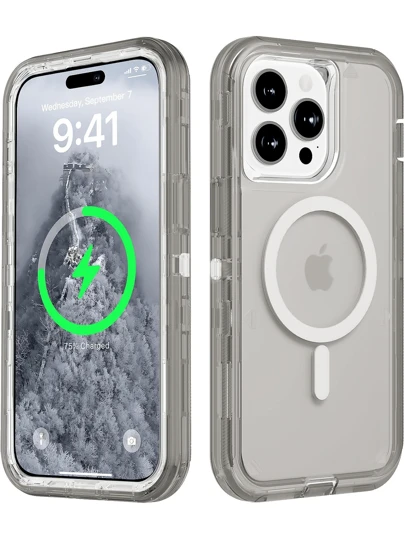 适用于 iPhone 16/15/14/13/12/11 系列透明手机壳,兼容 MagSafe,三层磁性充电盒,iPhone 16 Pro Max 重型防震防摔手机壳,适用于圣诞节、生日、新年礼物、冬季、送给家人、朋友、生日、女朋友、男朋友的礼物