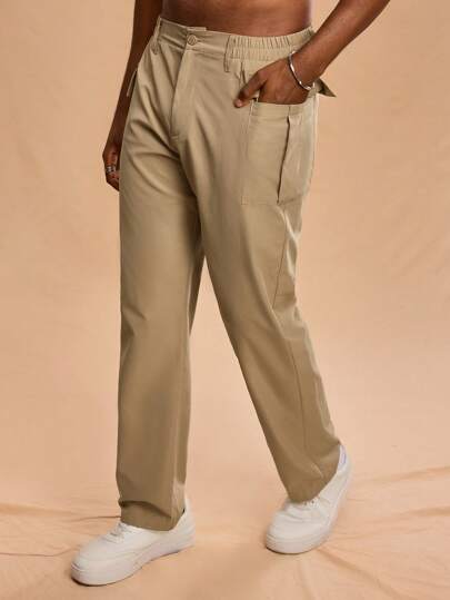 Forever 21 卡其色高腰翻盖口袋工装裤 - 卡其色 - 查看 1