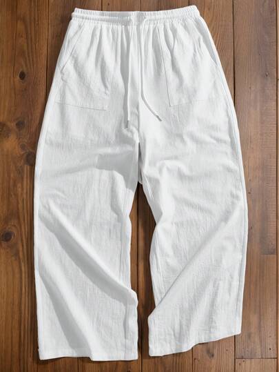 Forever 21 男士抽绳腰阔腿裤 - 白色 - 查看 5