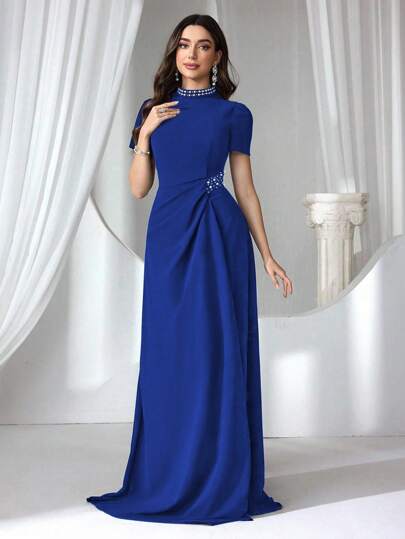 Coutiva 女士正式晚礼服(精心设计)、派对礼服、长袍、婚礼宾客礼服 - 寶藍色 - 查看 1