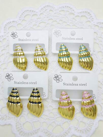 四对不锈钢海螺形耳钉,海洋主题设计,适合日常佩戴和参加派对。 - 彩色 - 查看 8