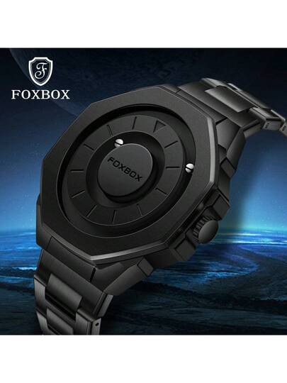 Foxbox LIGE 男士石英表复古酷炫表盘显示设计盲触防水旋转磁珠手表 - 黑色 - 查看 1