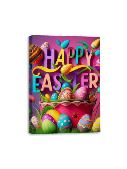 1 Piece Easter Font Pattern Canvas Wall Art Paintings For Living Room - Canvas Framed Print Wall Artworks Bedroom Decoration Office Wall Decor - 彩色 - 查看 1