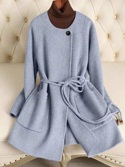 Franclia 女士秋冬新款大衣,简约百搭 - 淺藍色 - 查看 1