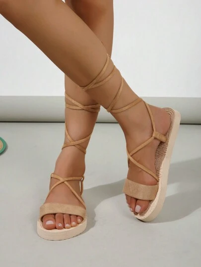 女士平底凉鞋,拼色交叉带绒面革拖鞋,海滩和度假的极简主义时尚,米色和黄色 - 棕色 - 查看 1